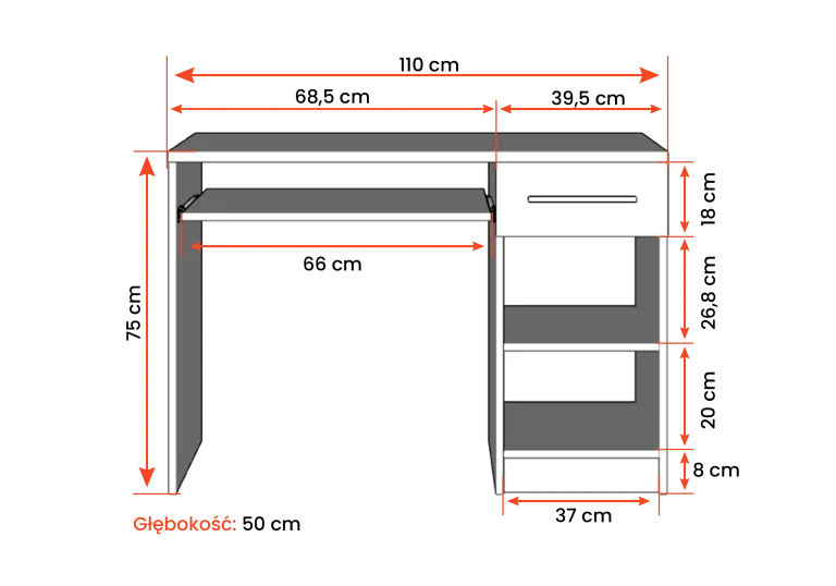 BUREAU 110CM X 75CM (129€)