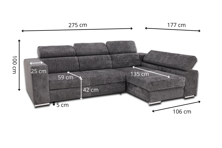 SALON EN COIN CONVERTIBLE AVEC COFFRE DE RANGEMENT ANGLE DROIT OU GAUCHE