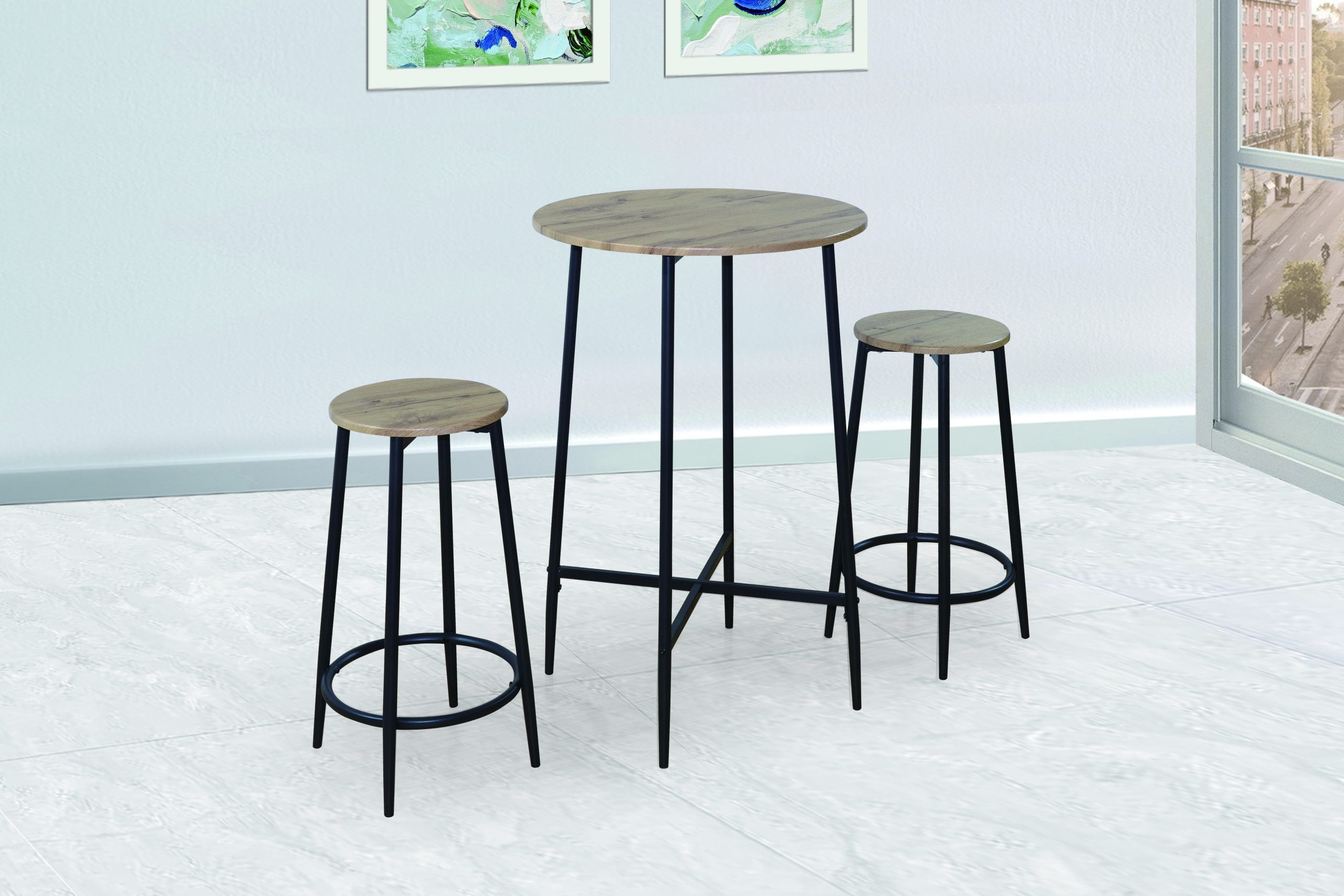 TABLE HAUTE RONDE + 2 CHAISES